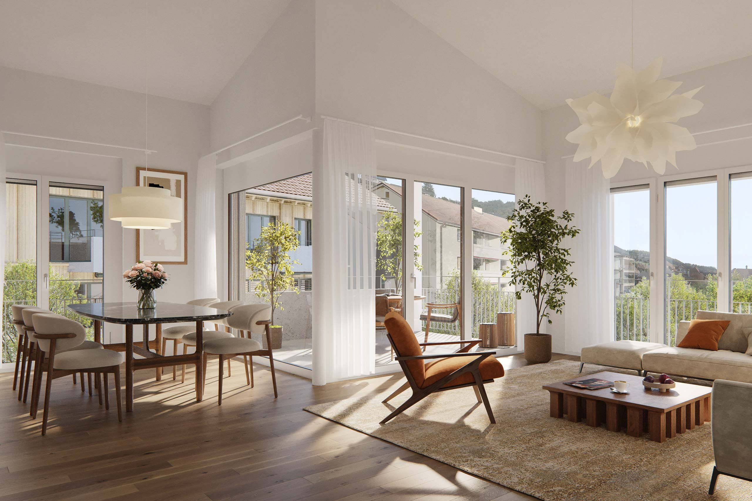 Ein breit gefächertes Wohnangebot, das sich optimal an unterschiedliche Bedürfnisse und Lebensstile anpasst, rundet das Angebot in der Falkematt ab. Von modernen 2.5-, 3.5-, 4.5- und 5.5-Zimmer-Wohnungen bis hin zu stilvollen Wohnateliers/Lofts – hier finden Sie den Raum, der zu Ihnen passt. Jede Einheit überzeugt mit einem offenen Wohnkonzept, einer modernen Küche mit Garderobe und einem eigenen Waschturm.